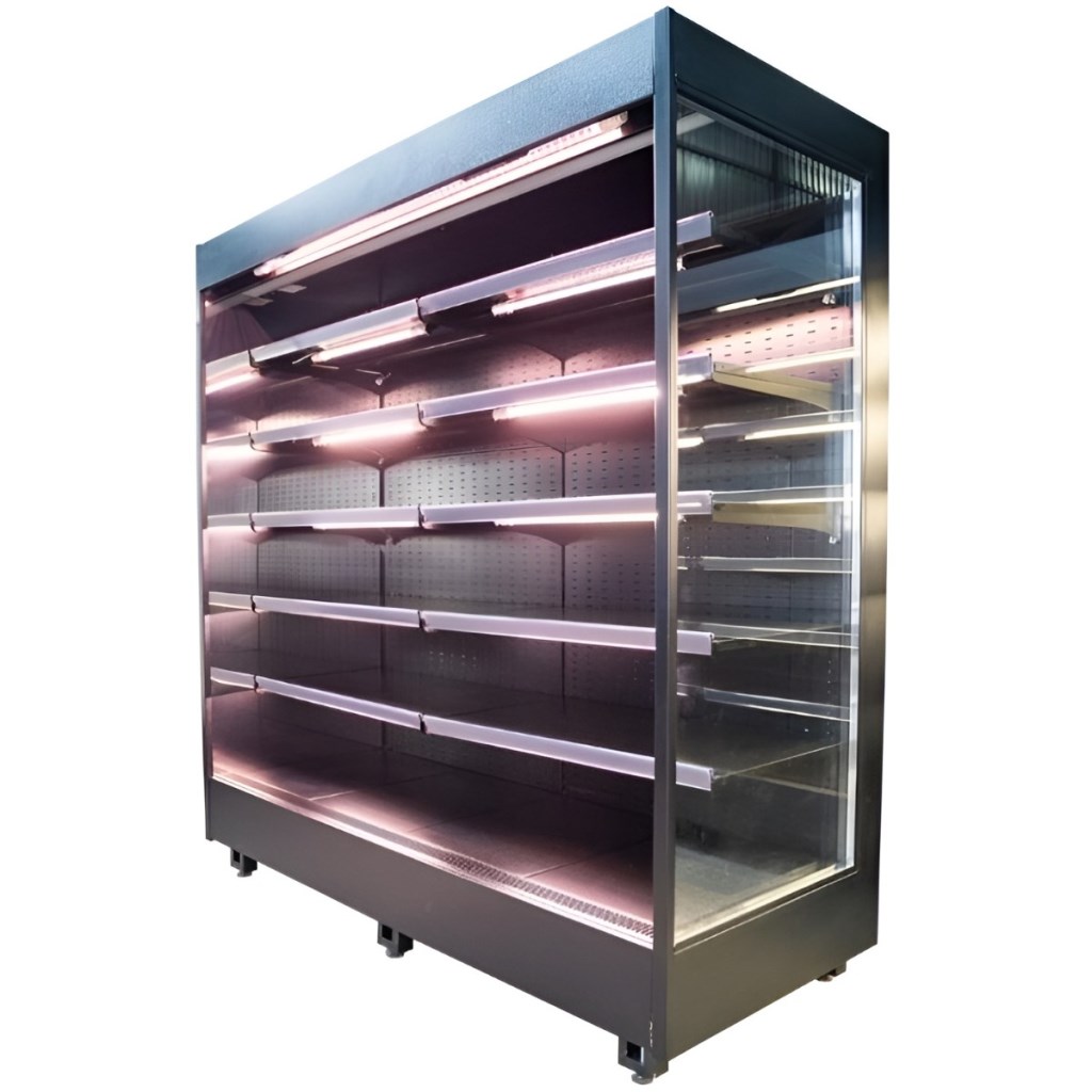 Система воздушной завесы предотвращает попадание тёплого воздуха внутрь витрины, обеспечивая стабильный температурный режим даже при интенсивной эксплуатации. Встроенное LED-освещение делает выкладку яркой и привлекательной, при этом потребляет минимум электроэнергии.