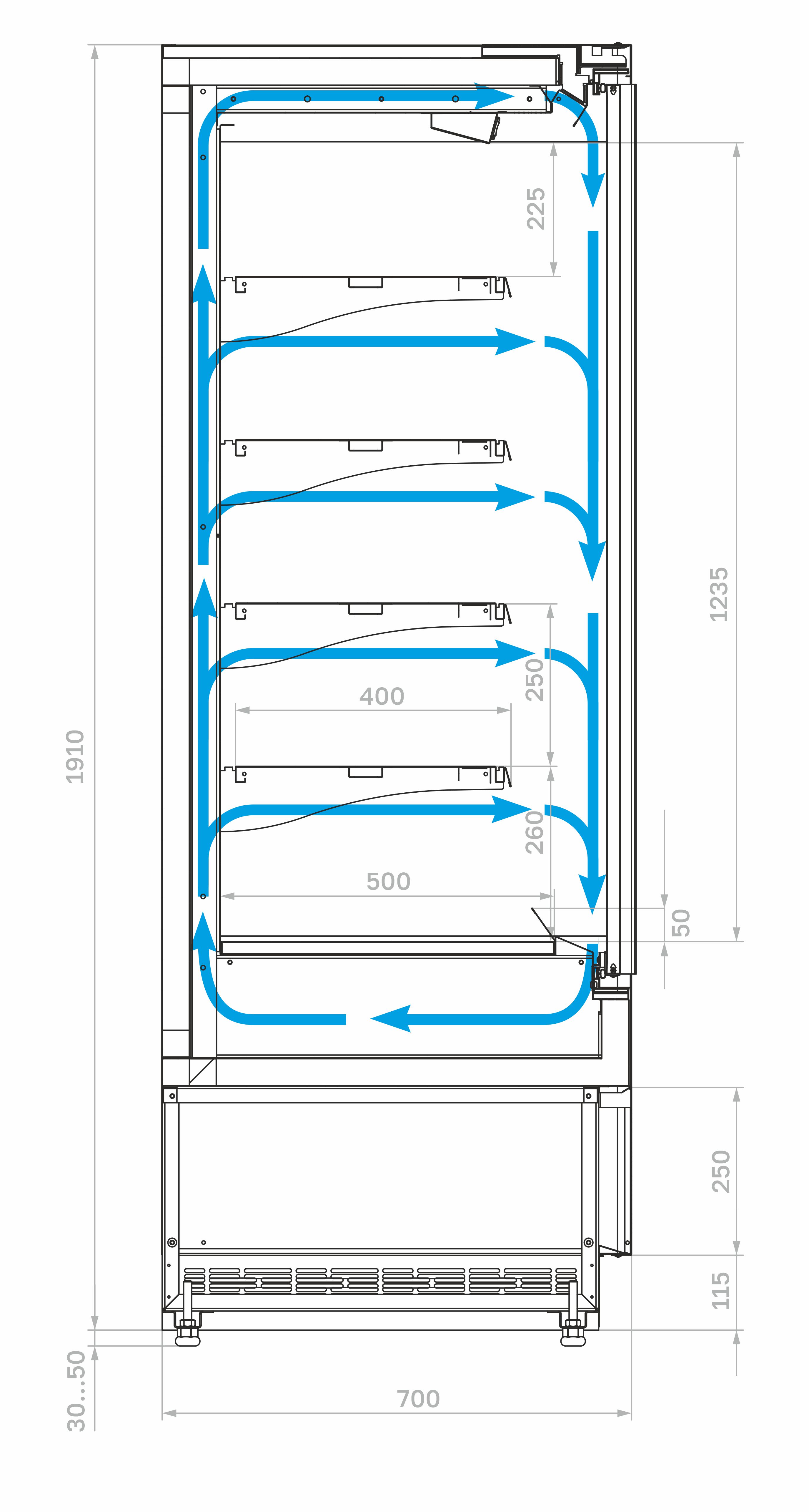 • Высота зоны выкладки: 1235 мм.