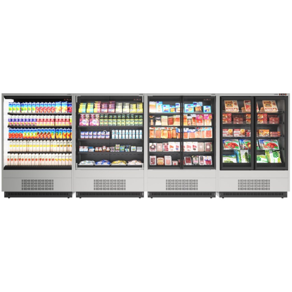 Боковины из металла и дверь из низкоэмиссионного закалённого стекла для энергосбережения и оптимального обзора продукции;