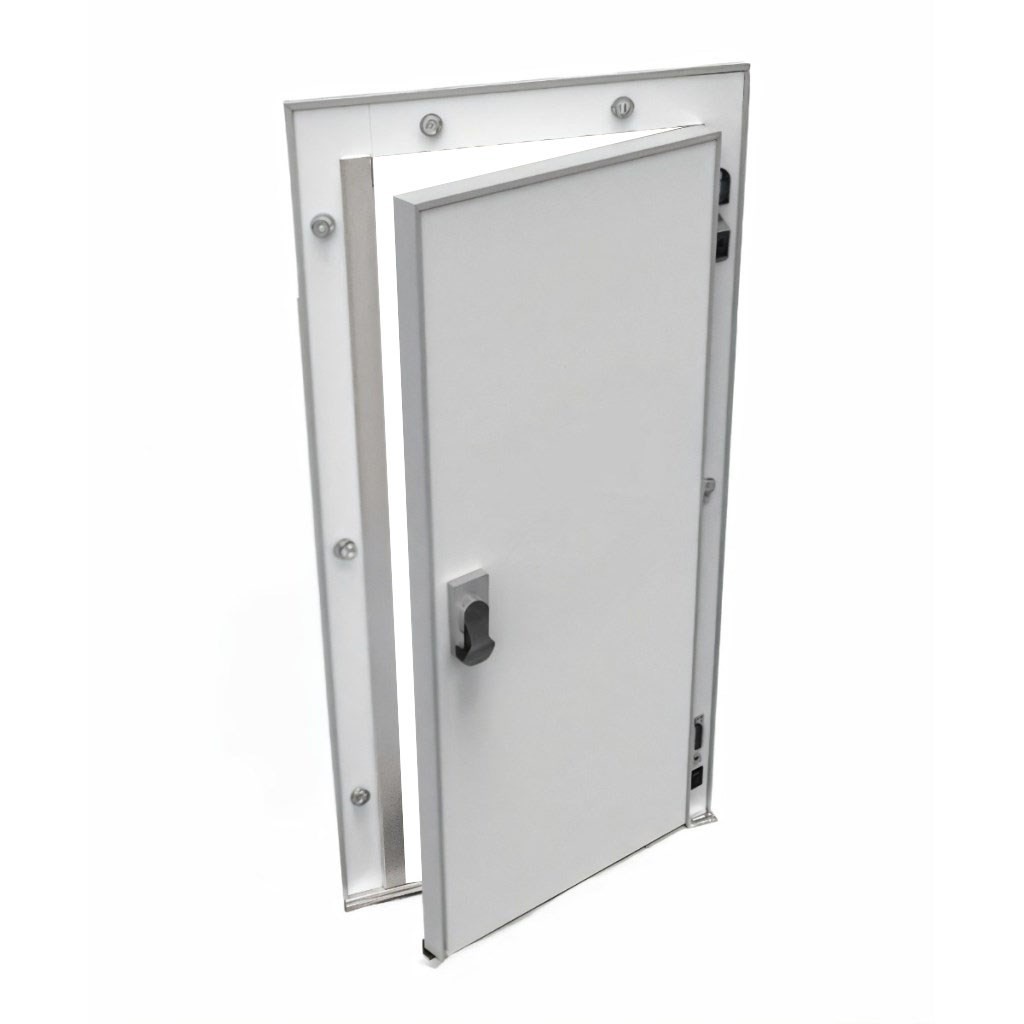 Каталог оборудования Холодильное оборудованиеДвери для холодильных камерРаспашные одностворчатые холодильные двериДверь холодильная распашная одностворчатая НТ-РДО-800*1900/80 (с металлической рамой) Дверь холодильная распашная одностворчатая НТ-РДО-800*1900/80 (с металлической рамой) Код товара: 065-807 Поделиться: WhatsAppTelegram СравнитьДобавить в КПВ избранное 0 40 945 ₽ В корзину 0 шт Под заказСамовывоз сегодня бесплатно Взять в кредит Купить в лизинг Получить консультацию в WhatsApp Описание Характеристики Отзывы 0 Инструкции 1 Дверь холодильная распашная одностворчатая НТ-РДО-800*1900/80 (с металлической рамой) – надежное и энергоэффективное решение для установки на предприятиях пищевой промышленности, в логистических центрах, на складах и терминалах. Дверь спроектирована для стабильной работы при экстремально низких температурах, что делает её оптимальным выбором для объектов с повышенными требованиями к сохранности продукции. В низкотемпературном исполнении НТ-80 дверь предназначена для эксплуатации при температурах от -5° до -20°. Особенности: Теплоизоляция: плита из пенополиуретана Dow Izolan высокой плотности (40–45 кг/м³) обеспечивает минимальные теплопотери, не содержит вредных хлорфторуглеродов и безопасна для пищевых производств. Пожаробезопасность: предел огнестойкости EI 15 позволяет использовать дверь в зонах с повышенными требованиями к безопасности. Конструкция: прочная рама из анодированного алюминия устойчива к коррозии, дверное полотно покрыто оцинкованной сталью толщиной 0,45–0,65 мм с полиэфирным слоем (RAL 9003), что обеспечивает долговечность и гигиеничность. Герметичность: двухконтурное резиновое уплотнение сотовой структуры на ПВХ-основе исключает мосты холода. Для низкотемпературных камер предусмотрен двухконтурный электрообогрев по периметру, предотвращающий намерзание. Фурнитура: комплектуется надежной европейской фурнитурой. Замок оснащён системой аварийного открывания с флуоресцентной маркировкой, что исключает риск блокировки персонала внутри камеры. Холодильная дверь НТ-РДО-800*1900/80 сочетает в себе прочность, долговечность и высокую энергоэффективность. Она гарантирует надежное сохранение температурного режима и безопасность эксплуатации, полностью соответствуя требованиям предприятий пищевой отрасли и объектов хранения.Изображение товара, представленного на фото, может отличаться от его фактического вида. Показать все Ширина светового проема800 ммВысота светового проема1900 ммТемпературный режимНизкотемпературный (до -25) Толщина двери80 ммОткрываниеЛевое/Правое Замок с аварийным открываниемДа БрендСевер Оставить отзыв Еще никто не оставил отзыв на этот товар Буклет двери изотермические и технологические ТМ Север.pdf Ранее просмотрено Под заказ 41 623 ₽ Дверь холодильная распашная одностворчатая НТ-РДО-800*2000/80 (с металлической рамой)