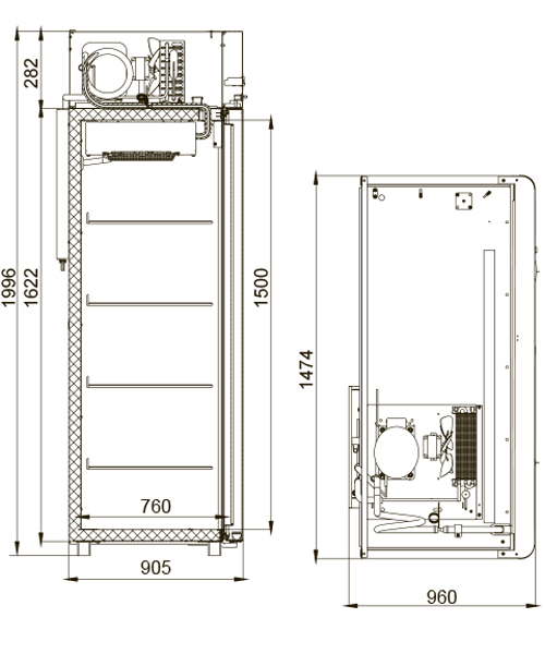 Каталог оборудования Холодильное оборудованиеШкафы шоковой заморозкиШкаф шоковой заморозки Polair CB114-Sm Alu Шкаф шоковой заморозки Polair CB114-Sm Alu Код товара: 062-597 Поделиться: WhatsAppTelegram СравнитьДобавить в КПВ избранное 0 249 375 ₽ В корзину 0 шт Под заказСамовывоз сегодня бесплатно Взять в кредит Купить в лизинг Получить консультацию в WhatsApp Описание Характеристики Отзывы 0 Инструкции 3 Шкаф шоковой заморозки Polair CB114-Sm Alu — это профессиональный морозильный шкаф, разработанный для демонстрации и хранения продуктов в заведениях общественного питания и торговли. Благодаря цельнозаливному корпусу из стали с полимерным покрытием и алюминиевыми профилями, шкаф отличается высокой механической прочностью, надежностью и современным премиальным дизайном. Шкаф стабильно работает при температуре окружающей среды до +40 °С и относительной влажности до 80%, что делает его универсальным для использования в самых разных условиях. Ключевые особенности: Электронный терморегулятор с ЖК-дисплеем — точная настройка и удобный контроль температуры. Верхнее расположение агрегата — экономия полезного пространства внутри камеры. Клапан Шредера и компенсационный клапан с подогревом — облегчение сервисного обслуживания и надежная работа при перепадах давления. ПЭН обогрева дверного проема, трубки слива конденсата, компенсационного клапана и ТЭН поддона воздухоохладителя — предотвращают образование наледи и обеспечивают бесперебойную работу. Распашные двери с интегрированными ручками — удобство эксплуатации и современный вид. Эластичные уплотнители с магнитными вставками — максимальная герметизация. Внутренняя светодиодная подсветка — улучшает обзор продуктов. Микропереключатель — автоматическое отключение вентилятора и включение подсветки при открытии двери. Регулируемые по высоте ножки и педаль открывания двери — повышают удобство использования. Замок — для надежной фиксации содержимого. 8 прочных полок формата GN 2/1 (530×650 мм), каждая выдерживает нагрузку до 40 кг. Толщина стенки корпуса — 61 мм — обеспечивает качественную термоизоляцию. Polair CB114-Sm Alu — это надежное, функциональное и эргономичное оборудование, которое сочетает продуманный современный дизайн с высокой производительностью. Он идеально подходит для заведений, где важны как удобство эксплуатации, так и презентация продукции.Изображение товара, представленного на фото, может отличаться от его фактического вида. Показать все Габаритные размеры1474×960×1996 ммДиапазон рабочей температурыдо -18 °CШирина960 ммДлина1474 ммВысота1996 ммОбъём1400 лКоличество уровней8 штМощность0,8 кВтРасход электроэнергии в сутки12 кВтНапряжение220 ВТип охлажденияДинамическое Размер гастроемкостей530×650 ммТип гастроемкостейGN 2/1 ХладагентR290 Габариты в упаковке1550x1000x2150 ммВес нетто212 кгВес брутто242 кгВсе шкафы шоковой заморозки POLAIR Оставить отзыв Еще никто не оставил отзыв на этот товар Инструкция на POLAIR CB114-Sm Alu.pdfСхема POLAIR CB114-Sm Alu.jpgДекларация о соответствии.pdf Ранее просмотрено В наличии 19 319 ₽ Расширительные пояса Polair 300×1960×2200 мм