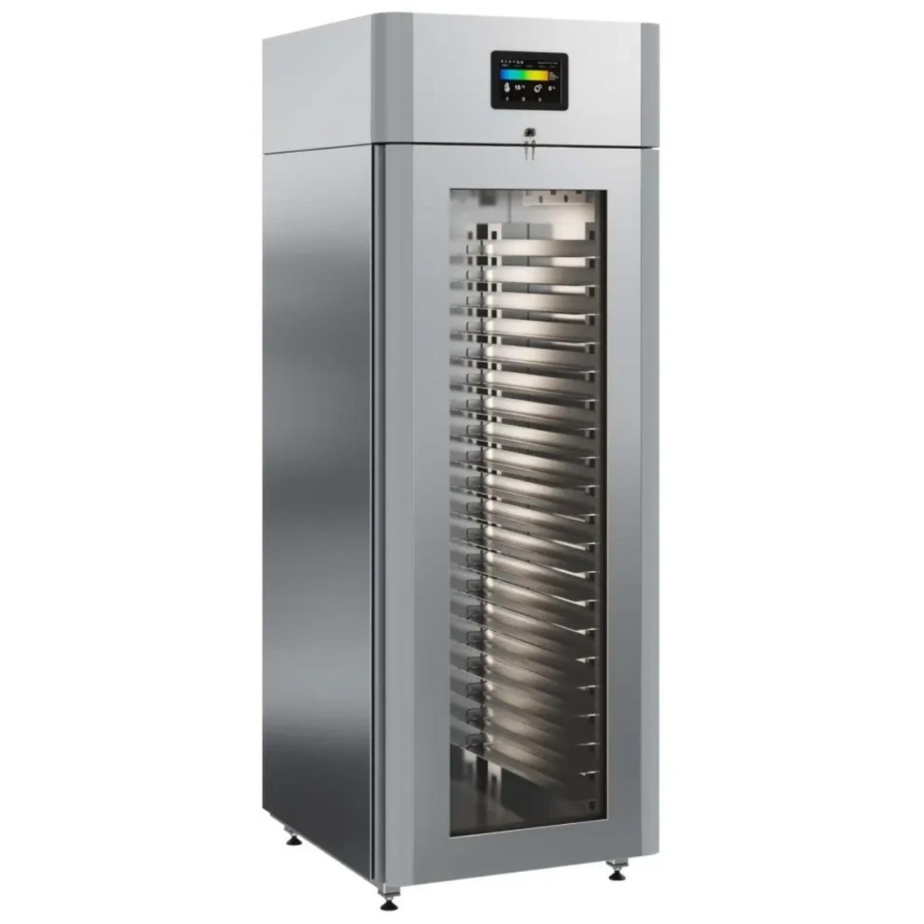 Каталог оборудования Холодильное оборудованиеШкафы холодильныеСпециализированные холодильные шкафыШкаф холодильный для хлебопекарных производств Polair CS107-Bakery Br со стеклом (Тип 1) Шкаф холодильный для хлебопекарных производств Polair CS107-Bakery Br со стеклом (Тип 1) Код товара: 062-622 Поделиться: WhatsAppTelegram СравнитьДобавить в КПВ избранное 0 414 545 ₽ В корзину 0 шт Под заказСамовывоз сегодня бесплатно Взять в кредит Купить в лизинг Получить консультацию в WhatsApp Описание Характеристики Отзывы 0 Инструкции 5 Шкаф холодильный для хлебопекарных производств Polair CS107-Bakery Br со стеклом (Тип 1) предназначен для создания оптимальных условий хранения и расстойки заготовок из теста на предприятиях общественного питания и торговли. Цельнозаливной корпус выполнен из нержавеющей стали, дверь — стеклопакет. Оборудование стабильно работает при температуре окружающей среды до +40 °C. В комплект входят 20 пар направляющих размером 400×600 мм. Особенности: Широкий функционал: охлаждение, замедление ферментации, хранение, регенерация, брожение и расстойка Динамическое охлаждение с мягким обдувом без заветривания и автоматическая оттайка с системой испарения конденсата Панель управления с 5" дисплеем: контроль температуры, влажности (регулируется от 60 до 95 %), скорости вентилятора и времени, а также возможность создания и сохранения программ Встроенный ультразвуковой увлажнитель (необходима система водоочистки и канализация) Эргономичная конструкция: верхнее расположение агрегата, распашная дверь со стеклопакетом, механизм самозакрывания, педаль для открытия, съёмные направляющие и легко заменяемый уплотнитель с магнитной вставкой Дополнительная защита: пластиковый бордюр по периметру камеры для предотвращения повреждений от тележек Простота ухода: штампованное углубление в дне корпуса для сбора загрязнений Экологичный хладагент R290 и энергоэффективность: потребляемая мощность — 0,55 кВт (охлаждение), 0,9 кВт (нагрев) Толщина стенки корпуса — 43 мм Polair CS107-Bakery Br со стеклом (Тип 1) — надёжный и многофункциональный шкаф, который обеспечивает полное управление процессами брожения и расстойки теста. Современная система охлаждения и увлажнения, продуманная конструкция и удобное управление делают его оптимальным решением для пекарен и кондитерских, стремящихся к стабильному качеству и высокой производительности.Изображение товара, представленного на фото, может отличаться от его фактического вида. Показать все Габаритные размеры697×1005×1960 ммДиапазон рабочей температурыот -10 до +40 °CДлина697 ммШирина1005 ммВысота1960 ммОбъём700 лКол-во дверей1 Тип двериСтеклянная Уровень влажностиот 60 до 95 %Направляющие под EN 40*6020 Расстояние между направляющими60 ммХолодильный агрегатВстроенный Тип оттайкиАвтоматическая Тип охлажденияДинамический ПодсветкаЕсть ХладагентR290 Вес нетто180 кгБрендPolairВсе специализированные холодильные шкафы Из нержавейки Оставить отзыв Еще никто не оставил отзыв на этот товар Схема POLAIR CS107 Bakery Br.jpgИнструкция на POLAIR CS107 Bakery Br.pdfБрошюра на хлебопекарное оборудование POLAIR.pdfДекларация о соответствии.pdfСертификат соответствия.pdf Похожие товары Перейти в каталог Под заказ 248 490 ₽ Шкаф холодильный для вызревания мяса и сыра Carboma M700GN-1-G-MHC 9006 Под заказ 118 831 ₽ Шкаф холодильный HURAKAN HKN-MA100 для созревания мяса Под заказ 391 000 ₽ Шкаф холодильный для вызревания мяса P