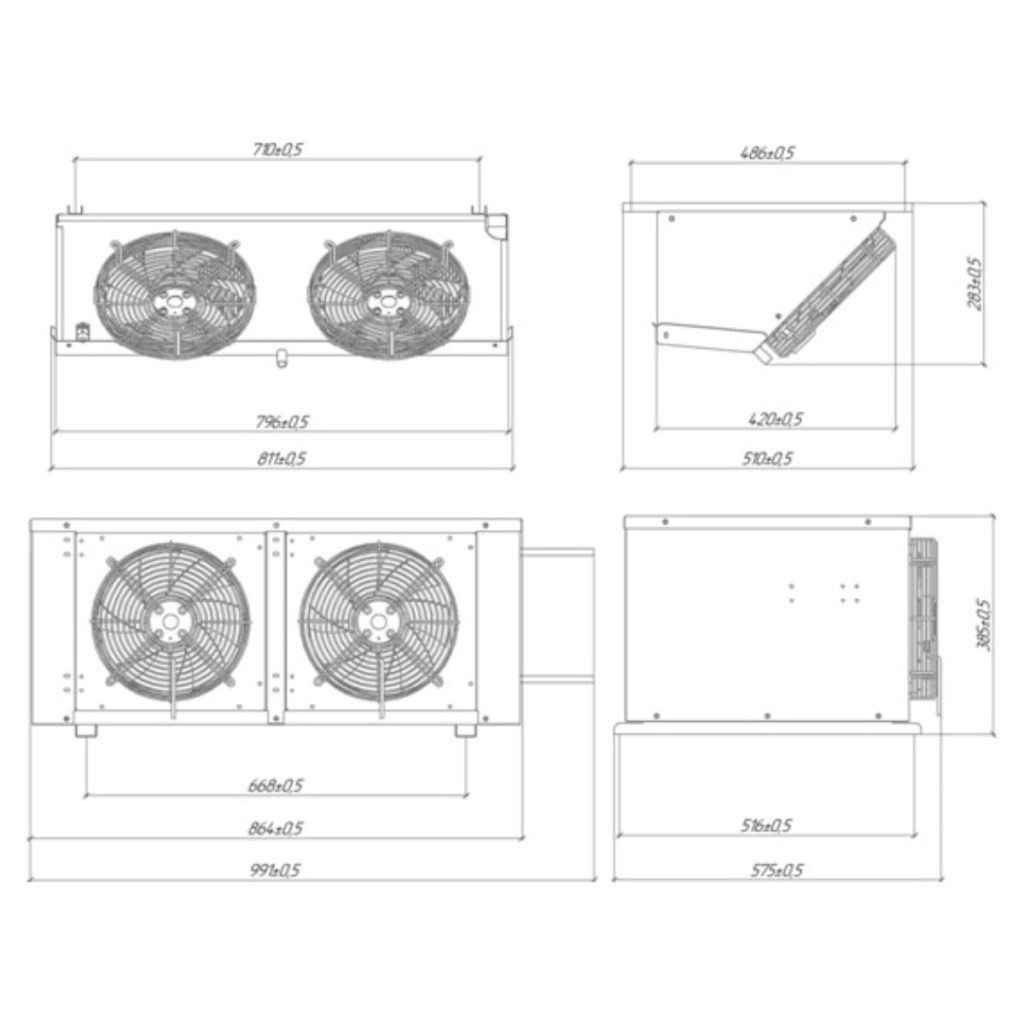 Пластинчато-трубчатый конденсатор и осевые вентиляторы — обеспечивают интенсивный теплообмен и стабильную работу при высоких нагрузках.