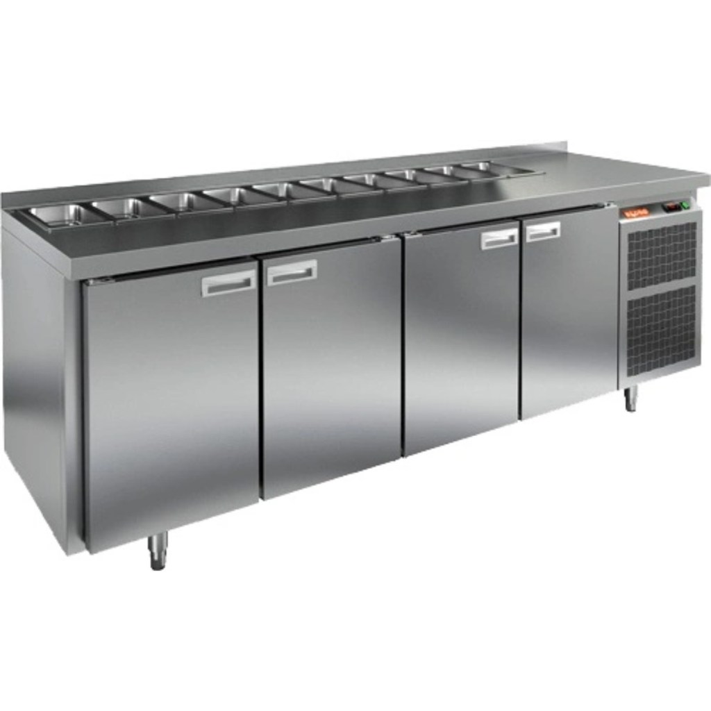 Каталог оборудования Холодильное оборудованиеСтолы охлаждаемыеСтолы холодильные для салатовСтол холодильный для салатов HiCold SL1-1111SN без крышки Стол холодильный для салатов HiCold SL1-1111SN без крышки Код товара: 064-515 Поделиться: WhatsAppTelegram СравнитьДобавить в КПВ избранное 0 191 962 ₽ В корзину 0 шт Под заказСамовывоз сегодня бесплатно Взять в кредит Купить в лизинг Получить консультацию в WhatsApp Описание Характеристики Отзывы 0 Инструкции 2 Стол холодильный для салатов HiCold SL1-1111SN без крышки предназначен для предприятий общественного питания и торговли. Он обеспечивает хранение и подготовку ингредиентов для пиццы, салатов и других блюд, а также охлаждение и кратковременное хранение скоропортящихся продуктов. Модель сочетает рабочую поверхность и холодильный объем, позволяя повару иметь все необходимые компоненты под рукой. Корпус и столешница выполнены из нержавеющей стали, обеспечивая надежность и долговечность. Особенности: Динамическая система охлаждения — равномерное распределение температуры внутри холодильного объема. Автоматическая оттайка — упрощает уход за оборудованием. Электронная панель управления — точная настройка температуры и режимов работы. 4 вместительные внутренние полки формата GN 1/1 — удобное хранение ингредиентов. Автоматические доводчики дверей с фиксатором открытого положения — комфорт и безопасность работы. Легкозаменяемые магнитные уплотнители — простота обслуживания. Открытая агрегатная часть — облегчает доступ для обслуживания. Регулируемые по высоте ножки — адаптация к рабочей поверхности. Столешница с бортом, толщина столешницы и теплоизоляции 50 мм — надежная защита и удобство работы. Размер полки: 430×325мм (GN 1/1) Максимальная глубина гастроемкостей: 100 мм HiCold SL1-1111SN без крышки — многофункциональный и надежный стол для профессиональной кухни. Обеспечивает удобство работы, эффективное охлаждение и безопасное хранение продуктов. Идеально подходит для ресторанов, кафе и пиццерий, где важны скорость работы и качество хранения ингредиентов.Изображение товара, представленного на фото, может отличаться от его фактического вида. Показать все Габаритные размеры2280×600×850 ммДиапазон рабочей температурыот +2 до +10 °CРасположение агрегатаБоковое Материал столешницыНержавеющая Тип столаС дверьми Тип двериГлухая Объём570 лКоличество дверей4 штТип гастроемкостейGN 1/3 Размер полки430×325 ммНапряжение220 ВМощность0,48 кВтТип охлажденияДинамический Тип оттайкиАвтоматическая СтолешницаС бортом Вес нетто143 кгВес брутто163 кгБрендHicold Оставить отзыв Еще никто не оставил отзыв на этот товар Паспорт на HICOLD SL1-1111SN.pdfДекларация о соответствии.pdf Ранее просмотрено Под заказ 204 472 ₽ Стол холодильный для салатов HiCold SL2-22GN (1/6) с крышкой Под заказ 15 111 ₽ Ванна моечная с бортом МХМ МБ-1-0,45-0,8/0,8 (AISI 430, t=0,6) Под заказ 213 382 ₽ Стол холодильный для салатов HiCold SL2-113GN (1/6) с крышкой В наличии Цена по запросу Стол холодильный для салатов HiCold SLE1-1111SN (1/3) без крышки