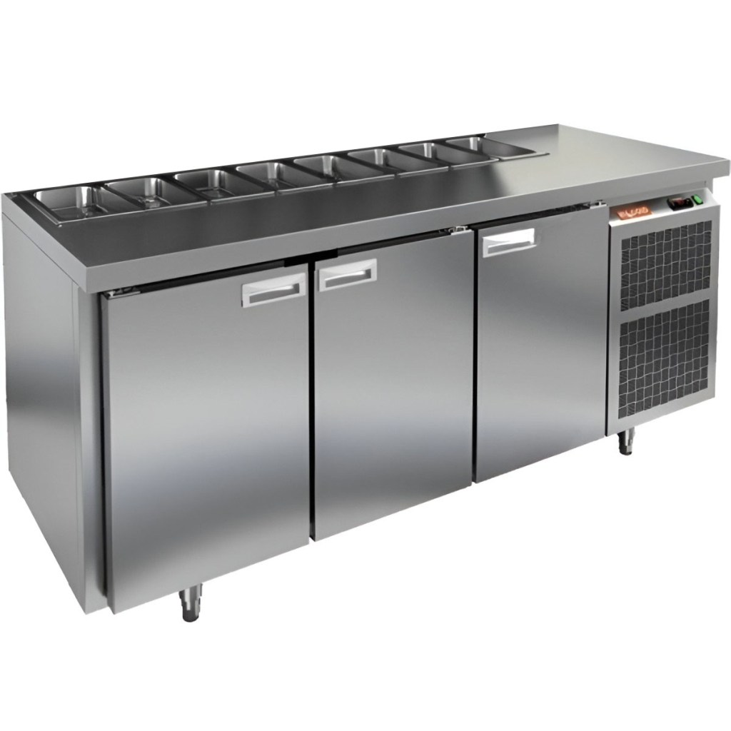 Каталог оборудования Холодильное оборудованиеСтолы охлаждаемыеСтолы холодильные для салатовСтол холодильный для салатов HiCold SL1-111SN (1/3) О без крышки Стол холодильный для салатов HiCold SL1-111SN (1/3) О без крышки Код товара: 064-522 Поделиться: WhatsAppTelegram СравнитьДобавить в КПВ избранное 0 163 162 ₽ В корзину 0 шт Под заказСамовывоз сегодня бесплатно Взять в кредит Купить в лизинг Получить консультацию в Max Описание Характеристики Отзывы 0 Инструкции 2 Стол холодильный для салатов HiCold SL1-111SN (1/3) О без крышки предназначен для предприятий общественного питания и торговли. Он обеспечивает хранение и подготовку ингредиентов для пиццы, салатов и других блюд, а также охлаждение и кратковременное хранение скоропортящихся продуктов. Модель сочетает рабочую поверхность и холодильный объем, позволяя повару иметь все необходимые компоненты под рукой. Корпус и столешница выполнены из нержавеющей стали, обеспечивая надежность и долговечность. Особенности: Динамическая система охлаждения — равномерное распределение температуры внутри холодильного объема. Автоматическая оттайка — упрощает уход за оборудованием. Электронная панель управления — точная настройка температуры и режимов работы. 3 вместительные внутренние полки формата GN 1/1 — удобное хранение ингредиентов. Автоматические доводчики дверей с фиксатором открытого положения — комфорт и безопасность работы. Легкозаменяемые магнитные уплотнители — простота обслуживания. Открытая агрегатная часть — облегчает доступ для обслуживания. Регулируемые по высоте ножки — адаптация к рабочей поверхности. Столешница без борта и без крышки, толщина столешницы и теплоизоляции 50 мм — надежная защита и удобство работы. Размер полки: 430×320мм (GN 1/1) Максимальная глубина гастроемкостей: 100 мм HiCold SL1-111SN (1/3) О без крышки — многофункциональный и надежный стол для профессиональной кухни. Обеспечивает удобство работы, эффективное охлаждение и безопасное хранение продуктов. Мобильная модификация с колёсами позволяет легко перемещать стол, что делает его идеальным для ресторанов, кафе и пиццерий.Изображение товара, представленного на фото, может отличаться от его фактического вида. Показать все Габаритные размеры1835×600×850 ммДиапазон рабочей температурыот +2 до +10 °CРасположение агрегатаБоковое Материал столешницыНержавеющая Тип столаС дверьми Тип двериГлухая Объём435 лКоличество дверей3 штТип гастроемкостейGN 1/3 Размер полки430×320 ммНапряжение220 ВМощность0,46 кВтТип охлажденияДинамический Тип оттайкиАвтоматическая СтолешницаБез борта Вес нетто120 кгВес брутто183 кгБрендHicold Оставить отзыв Еще никто не оставил отзыв на этот товар Паспорт на HICOLD SL1-111SN О.pdfДекларация о соответствии.pdf Ранее просмотрено Под заказ 305 992 ₽ Стол холодильный для салатов HiCold SL1-333GN (1/3) с крышкой Под заказ 209 962 ₽ Стол холодильный для салатов HiCold SL1-133GN (1/3) с крышкой Под заказ 201 682 ₽ Стол холодильный для салатов HiCold SL2-22GN (1/6) О без крышки Под заказ 320 392 ₽ Стол холодильный для салатов HiCold SL1-2222GN (1/3) с крышкой