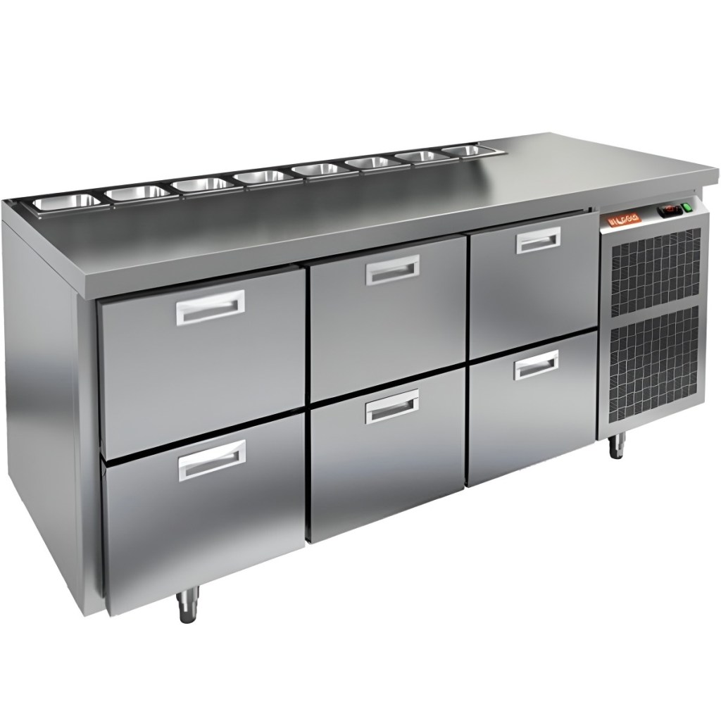 Каталог оборудования Холодильное оборудованиеСтолы охлаждаемыеСтолы холодильные для салатовСтол холодильный для салатов HiCold SL2-222GN (1/6) О без крышки Стол холодильный для салатов HiCold SL2-222GN (1/6) О без крышки Код товара: 064-818 Поделиться: WhatsAppTelegram СравнитьДобавить в КПВ избранное 0 255 861 ₽ В корзину 0 шт Под заказСамовывоз сегодня бесплатно Взять в кредит Купить в лизинг Получить консультацию в Max Описание Характеристики Отзывы 0 Инструкции 1 Стол холодильный для салатов HiCold SL2-222GN (1/6) О без крышки предназначен для использования на предприятиях общественного питания и торговли. Он подходит для хранения, обработки и кратковременного охлаждения ингредиентов, применяемых при приготовлении пиццы, салатов, закусок и других блюд. Модель совмещает охлаждаемый объем и рабочую поверхность, что значительно повышает удобство и скорость работы персонала. Корпус и столешница выполнены из прочной и гигиеничной нержавеющей стали, устойчивой к влаге, загрязнениям и механическим повреждениям. Особенности модели: Электронная панель управления — точная настройка температуры. Салат-бар на 8 гастроемкостей — быстрый доступ к ингредиентам. 6 внутренних ящиков — удобное размещение и легкая замена продуктов. Автоматические доводчики дверей — комфортная эксплуатация. Съёмные магнитные уплотнители — герметичность и стабильная температура. Открытая агрегатная часть — лёгкое обслуживание. Регулируемые ножки — установка на любой поверхности. Глубина гастроемкостей до 150 мм, столешница и теплоизоляция — 50 мм. HiCold SL2-222GN (1/6) О без крышки — универсальное и функциональное решение для профессиональной кухни, позволяющее оптимизировать рабочие процессы и повысить производительность за счет удобного хранения и быстрого доступа к ингредиентам.Изображение товара, представленного на фото, может отличаться от его фактического вида. Показать все Габаритные размеры1835×700×850 ммДиапазон рабочей температурыот +2 до +10 °CРасположение агрегатаБоковое Материал столешницыНержавеющая Тип столаС ящиками Объём505 лТип гастроемкостейGN 1/6 Количество ящиков6 штНапряжение220 ВМощность0,5 кВтТип охлажденияДинамическое Тип оттайкиАвтоматическая СтолешницаБез борта Габариты в упаковке2000×850×1000 ммВес нетто130 кгВес брутто180 кгБрендHicold Оставить отзыв Еще никто не оставил отзыв на этот товар Декларация о соответствии.pdf Ранее просмотрено Под заказ 222 022 ₽ Стол холодильный для салатов HiCold SLE3-1111GN полипропилен, без крышки Под заказ 41 995 ₽ Дверь холодильная распашная одностворчатая СТ-РДО-800*2200/80