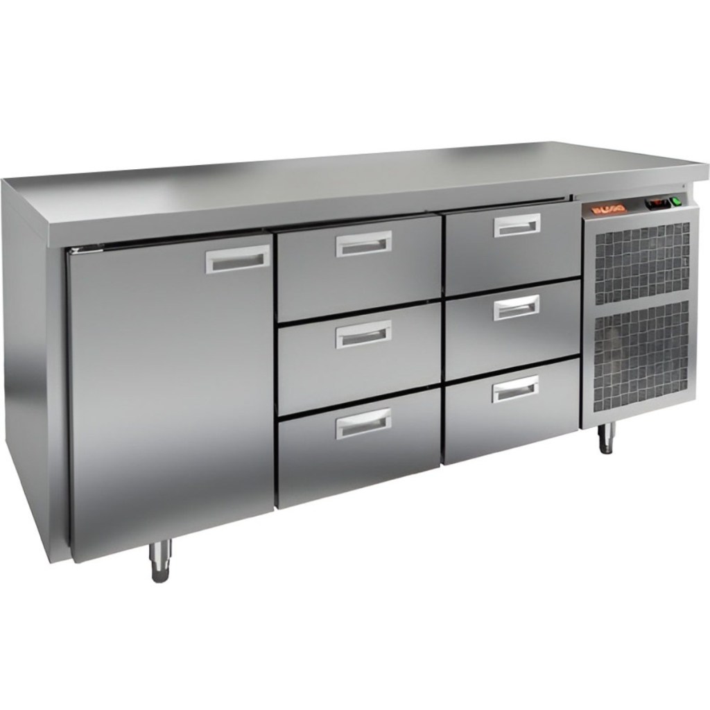 Каталог оборудования Холодильное оборудованиеСтолы охлаждаемыеСтолы морозильные низкотемпературныеСтол морозильный HiCold GN 133/BT O Стол морозильный HiCold GN 133/BT O Код товара: 065-067 Поделиться: WhatsAppTelegram СравнитьДобавить в КПВ избранное 0 266 752 ₽ В корзину 0 шт Под заказСамовывоз сегодня бесплатно Взять в кредит Купить в лизинг Получить консультацию в WhatsApp Описание Характеристики Отзывы 0 Инструкции 2 Стол морозильный HiCold GN133/BT О сочетает в себе удобную рабочую поверхность и вместительную морозильную камеру. Верхняя часть используется для раскатки теста и подготовки ингредиентов, а внутренняя камера предназначена для заморозки и хранения продуктов и полуфабрикатов. Стол оснащен одной глухой дверяью и шестью выдвижными ящиками, что обеспечивает удобный доступ к продуктам и рациональное использование внутреннего пространства. Оборудование идеально подходит для предприятий общественного питания. Особенности: Совместимость с GN-стандартом — полки, направляющие и стойки полностью интегрируются с профессиональным кухонным оборудованием. Прочный цельнозаливной корпус из нержавеющей стали с 50 мм изоляцией обеспечивает высокую герметичность и жесткость конструкции. Столешница без борта для удобной работы с крупными и длинными заготовками. Электронный блок управления с повышенной надежностью и несколькими режимами оттаивания. Вентилятор увеличенной мощности и принудительная вентиляция по всему объему камеры для равномерного и быстрого охлаждения. Интеллектуальная система размораживания и термическое выпаривание конденсата снижают затраты на обслуживание. Экономичный компрессор нового поколения снижает энергопотребление. Облегченный доступ к агрегату упрощает сервисное обслуживание. Двери с доводчиками и ПЭН предотвращают примерзание и обеспечивают плотное закрытие. Регулируемые по высоте ножки для устойчивости на разных поверхностях. Максимальная нагрузка на полку — 50 кг. Высота борта рабочей поверхности — 50 мм. Температура окружающей среды: 12–32 °C. HiCold GN133/BT О — это надежный и функциональный морозильный стол, обеспечивающий удобство работы и эффективное хранение продуктов. Он идеально подходит для интенсивной эксплуатации на профессиональных кухнях ресторанов, кафе и предприятий общественного питания.Изображение товара, представленного на фото, может отличаться от его фактического вида. Показать все Габаритные размеры1835×700×850 ммДиапазон рабочей температурыот -18 до -10 °CРасположение агрегатаБоковое Материал столешницыНержавеющая Тип столаС дверьми и ящиками Тип двериГлухая Объём505 лКоличество дверей1 штКоличество полок1 штКоличество ящиков6 штНапряжение220 ВМощность0,6 кВтТип охлажденияДинамический Тип оттайкиАвтоматическая СтолешницаБзе борта Габариты в упаковке200×845×995 ммВес нетто128 кгВес брутто148 кгБрендHicoldВсе морозильные столы HicoldВсе морозильные столы без бортаВсе морозильные столы с бортом Оставить отзыв Еще никто не оставил отзыв на этот товар Паспорт на HICOLD GN133/BT О.pdfДекларация о соответствии.pdf Похожие товары Перейти в каталог Под заказ 169 732 ₽ Стол морозильный Abat СХН-70-02 без борта (дверь, дверь, дверь) Под заказ 156 861 ₽ Стол морозильный HiCold GN 111/BT W Ранее просмотрено Под заказ 223 011 ₽ Стол морозильный HiCold GN 112 BR2 BT О