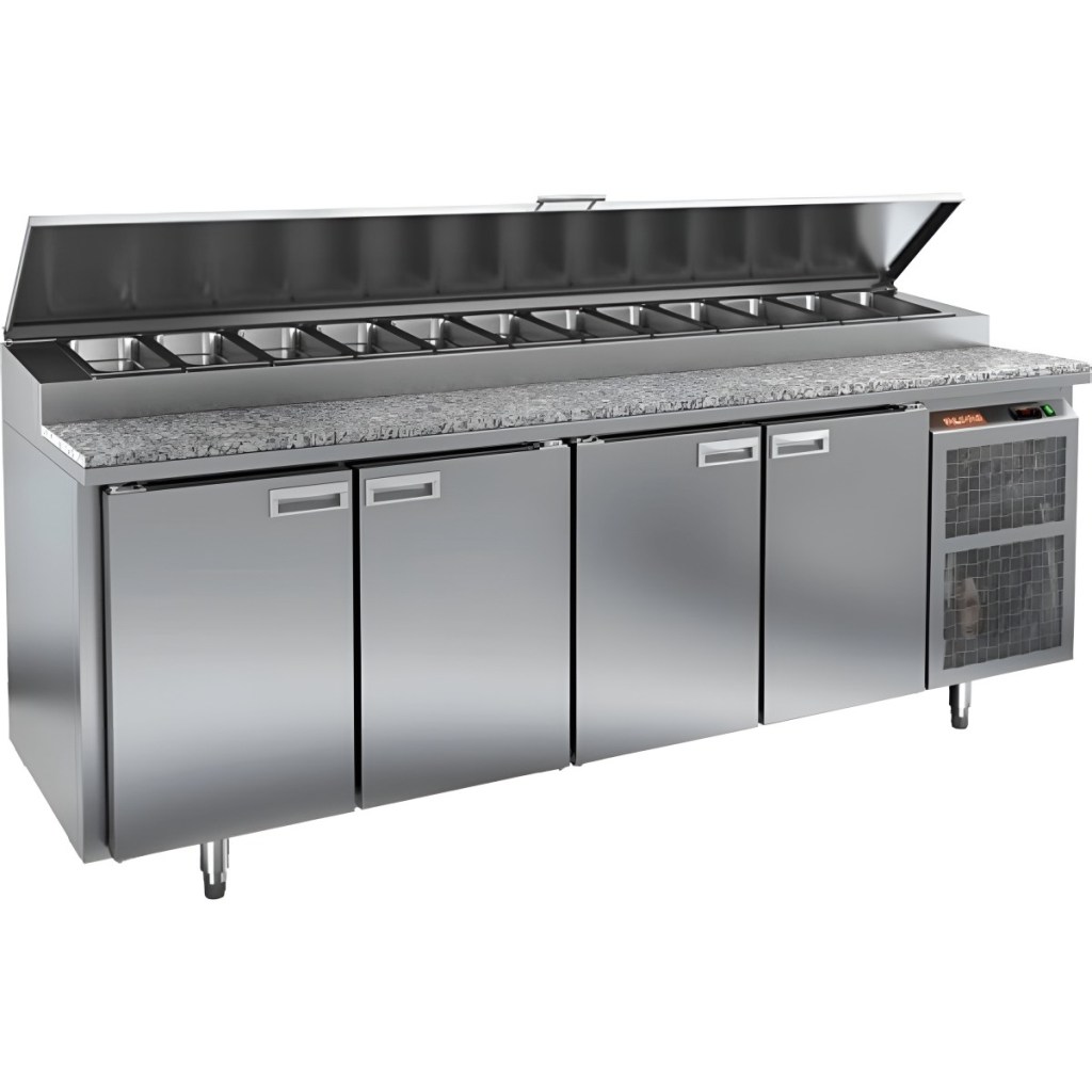 Каталог оборудования Холодильное оборудованиеСтолы охлаждаемыеСтолы холодильные для пиццыСтол холодильный для пиццы HiCold PZ1-1111GN (1/3) камень Стол холодильный для пиццы HiCold PZ1-1111GN (1/3) камень Код товара: 064-684 Поделиться: WhatsAppTelegram СравнитьДобавить в КПВ избранное 0 290 061 ₽ В корзину 0 шт Под заказСамовывоз сегодня бесплатно Взять в кредит Купить в лизинг Получить консультацию в Max Описание Характеристики Отзывы 0 Инструкции 2 Стол холодильный для пиццы HiCold PZ1-1111GN (1/3) камень предназначен для профессиональных кухонь ресторанов, кафе и предприятий торговли. Он совмещает просторную рабочую поверхность из камня для раскатки теста и подготовки ингредиентов с охлаждаемым объёмом для кратковременного хранения продуктов и напитков. Такой подход экономит место и ускоряет работу повара — всё необходимое всегда под рукой. Основные особенности: Столешница из камня — устойчива к механическим повреждениям, не впитывает запахи и легко очищается Динамическая система охлаждения для равномерного распределения холода Автоматическая оттайка для бесперебойной работы Электронная панель управления для точной регулировки температуры 4 вместительные полки формата GN 1/1 (размер 530×325 мм) Автоматические доводчики дверей с фиксатором открытого положения Легкозаменяемые магнитные уплотнители для поддержания герметичности Открытая агрегатная часть для удобного обслуживания Регулируемые по высоте ножки для установки по уровню Максимальная глубина гастроёмкостей: 100 мм Глубина рабочей поверхности: 324 мм Толщина столешницы и теплоизоляции: 50 мм Вместимость салат-бара: до 12 гастроёмкостей HICOLD PZ1-1111/GN со столешницей из камня — это прочный, гигиеничный и удобный стол для пиццы, сочетающий рабочую поверхность и холодильный блок. Идеален для интенсивной эксплуатации на профессиональной кухне.Изображение товара, представленного на фото, может отличаться от его фактического вида. Показать все Габаритные размеры2280×700×1000 ммДиапазон рабочей температурыот +2 до +10 °CРасположение агрегатаБоковое Материал столешницыГранитная Тип столаС дверьми Тип двериГлухая Объём660 лТип гастроемкостейGN 1/3 Количество дверей4 штРазмер полки530×325 ммНапряжение220 ВМощность0,48 кВтТип охлажденияДинамическое Тип оттайкиАвтоматическая Габариты в упаковке2380×840×1140 ммВес нетто208 кгВес брутто228 кгБрендHicoldВсе холодильные столы для пиццы Hicold Оставить отзыв Еще никто не оставил отзыв на этот товар Паспорт на HICOLD PZ1-1111GN (1/3).pdfДекларация о соответствии.pdf Ранее просмотрено Под заказ 171 351 ₽ Стол холодильный для салатов HiCold SLE2-1111SN (1/6) В наличии 172 161 ₽ Стол холодильный для салатов HiCold SLE1-1111GN (1/3)