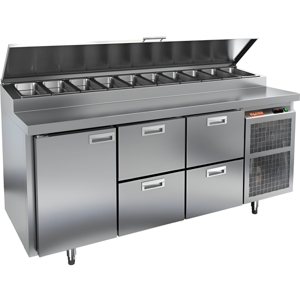 Каталог оборудования Холодильное оборудованиеСтолы охлаждаемыеСтолы холодильные для пиццыСтол холодильный для пиццы HiCold PZ1-122N (1/3) Стол холодильный для пиццы HiCold PZ1-122N (1/3) Код товара: 064-709 Поделиться: WhatsAppTelegram СравнитьДобавить в КПВ избранное 0 275 572 ₽ В корзину 0 шт Под заказСамовывоз сегодня бесплатно Взять в кредит Купить в лизинг Получить консультацию в Max Описание Характеристики Отзывы 0 Стол холодильный для пиццы HiCold PZ1-122GN (1/3) — профессиональное оборудование для предприятий общественного питания и торговли. Он сочетает рабочую поверхность для раскатки теста и подготовки ингредиентов с охлаждаемым блоком для кратковременного хранения скоропортящихся продуктов и напитков. Такое решение обеспечивает максимальное удобство — все необходимые компоненты всегда находятся под рукой. Корпус и столешница выполнены из нержавеющей стали, что гарантирует долговечность, устойчивость к повреждениям и лёгкость ухода. Основные особенности: Нержавеющая столешница и корпус — прочность, гигиеничность и лёгкость очистки Динамическая система охлаждения — равномерное распределение холода Автоматическая оттайка — стабильная работа без образования наледи Электронная панель управления — точная настройка температуры 1 дверца и 4 выдвижных ящика — удобная организация внутреннего пространства Автоматические доводчики дверцы и ящиков — комфорт при работе Легкозаменяемые магнитные уплотнители — поддержание герметичности Открытая агрегатная часть — лёгкий доступ для обслуживания Регулируемые по высоте ножки — установка на неровных поверхностях Максимальная глубина гастроёмкостей: 100 мм Глубина рабочей поверхности: 324 мм Толщина столешницы и теплоизоляции: 50 мм Вместимость салат-бара: до 10 гастроёмкостей Стол холодильный HiCold PZ1-122GN (1/3) — надёжный и функциональный холодильный стол для пиццы и салатов. Продуманная организация хранения и удобство эксплуатации обеспечивают быстрый доступ к ингредиентам и высокую производительность на профессиональной кухне.Изображение товара, представленного на фото, может отличаться от его фактического вида. Показать все Габаритные размеры1835×700×1000 ммДиапазон рабочей температурыот +2 до +10 °CРасположение агрегатаБоковое Материал столешницыНержавеющая Тип столаС дверьми и ящиками Тип двериГлухая Объём505 лТип гастроемкостейGN 1/3 Количество дверей1 штКоличество ящиков4 штРазмер полки530×325 ммНапряжение220 ВМощность0,5 кВтТип охлажденияДинамическое Тип оттайкиАвтоматическая Габариты в упаковке2000×850×1140 ммВес нетто172 кгВес брутто200 кгБрендHicoldВсе холодильные столы для пиццы HicoldВсе нержавеющие холодильные столы для пиццы Оставить отзыв Еще никто не оставил отзыв на этот товар Ранее просмотрено Под заказ 278 361 ₽ Стол холодильный для пиццы HiCold PZE1-222GN (1/3) Под заказ 229 941 ₽ Стол холодильный для пиццы HiCold PZ1-13/GN (1/3) Под заказ 247 761 ₽ Стол холодильный для пиццы HiCold PZE2-221/GN (1/6H)