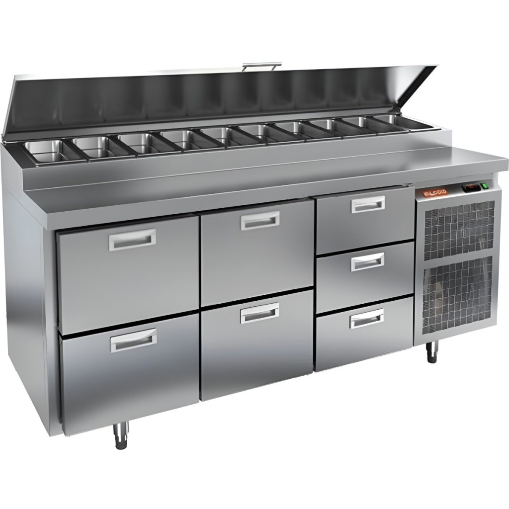 Каталог оборудования Холодильное оборудованиеСтолы охлаждаемыеСтолы холодильные для пиццыСтол холодильный для пиццы HiCold PZ1-223GN (1/3H) Стол холодильный для пиццы HiCold PZ1-223GN (1/3H) Код товара: 064-711 Поделиться: WhatsAppTelegram СравнитьДобавить в КПВ избранное 0 321 471 ₽ В корзину 0 шт Под заказСамовывоз сегодня бесплатно Взять в кредит Купить в лизинг Получить консультацию в WhatsApp Описание Характеристики Отзывы 0 Стол холодильный для пиццы HiCold PZ1-223GN (1/3H) — профессиональное оборудование для предприятий общественного питания и торговли. Он сочетает рабочую поверхность для раскатки теста и подготовки ингредиентов с охлаждаемым блоком для кратковременного хранения скоропортящихся продуктов и напитков. Такое решение обеспечивает максимальное удобство — все необходимые компоненты всегда находятся под рукой. Корпус и столешница выполнены из нержавеющей стали, что гарантирует долговечность, устойчивость к повреждениям и лёгкость ухода. Основные особенности: Нержавеющая столешница и корпус — прочность, гигиеничность и лёгкость очистки Динамическая система охлаждения — равномерное распределение холода Автоматическая оттайка — стабильная работа без образования наледи Электронная панель управления — точная настройка температуры 7 выдвижных ящиков — удобная организация внутреннего пространства без дверцы Автоматические доводчики ящиков — комфорт при работе Легкозаменяемые магнитные уплотнители — поддержание герметичности Открытая агрегатная часть — лёгкий доступ для обслуживания Регулируемые по высоте ножки — установка на неровных поверхностях Максимальная глубина гастроёмкостей: 100 мм Глубина рабочей поверхности: 324 мм Толщина столешницы и теплоизоляции: 50 мм Вместимость салат-бара: до 10 гастроёмкостей Стол холодильный HiCold PZ1-223GN (1/3H) — надёжный и функциональный холодильный стол для пиццы и салатов. Отсутствие дверцы и продуманная система хранения обеспечивают быстрый доступ к ингредиентам, удобство эксплуатации и высокую производительность на профессиональной кухне.Изображение товара, представленного на фото, может отличаться от его фактического вида. Показать все Габаритные размеры1835×700×1000 ммДиапазон рабочей температурыот +2 до +10 °CРасположение агрегатаБоковое Материал столешницыНержавеющая Тип столаС ящиками Объём505 лТип гастроемкостейGN 1/3 Количество ящиков7 штНапряжение220 ВМощность0,5 кВтТип охлажденияДинамическое Тип оттайкиАвтоматическая Габариты в упаковке2000×850×1140 ммВес нетто172 кгВес брутто200 кгБрендHicoldВсе холодильные столы для пиццы HicoldВсе нержавеющие холодильные столы для пиццы Оставить отзыв Еще никто не оставил отзыв на этот товар Ранее просмотрено Под заказ 297 352 ₽ Стол холодильный для пиццы HiCold PZ3-112/GN камень Под заказ 361 791 ₽ Стол холодильный для пиццы HiCold PZ4-11/GN камень Под заказ 297 352 ₽ Стол холодильный для пиццы HiCold PZ3-211/GN камень Под заказ 253 251 ₽ Стол холодильный для пиццы HiCold PZ3-12/GN камень Под заказ 268 552 ₽ Стол холодильный для пиццы HiCold PZ3-13/GN камень Под заказ 327 952 ₽ Стол холодильный для пиццы HiCold PZ3-122/GN камень Под заказ 263 692 ₽ Стол холодильный для пиццы HiCold PZ3-13/SN камень