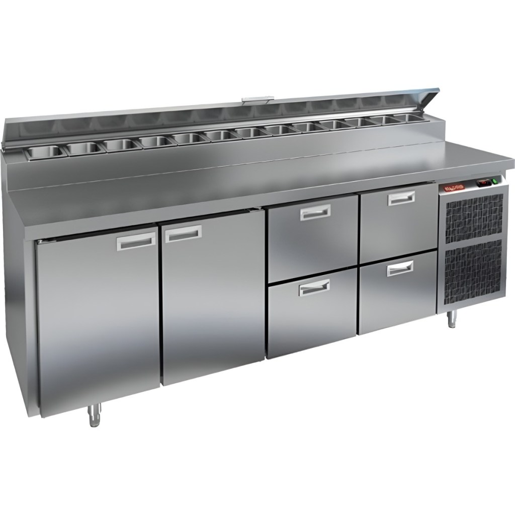 Каталог оборудования Холодильное оборудованиеСтолы охлаждаемыеСтолы холодильные для пиццыСтол холодильный для пиццы HiCold PZ2-1122GN (1/6) Стол холодильный для пиццы HiCold PZ2-1122GN (1/6) Код товара: 064-749 Поделиться: WhatsAppTelegram СравнитьДобавить в КПВ избранное 0 311 842 ₽ В корзину 0 шт Под заказСамовывоз сегодня бесплатно Взять в кредит Купить в лизинг Получить консультацию в WhatsApp Описание Характеристики Отзывы 0 Стол холодильный для пиццы HiCold PZ2-1122GN (1/6) предназначен для кухонь и предприятий общественного питания. Он используется для раскатки теста, подготовки ингредиентов для пиццы, салатов и других блюд, а также для охлаждения и кратковременного хранения скоропортящихся продуктов. Модель совмещает нержавеющую рабочую поверхность и охлаждаемый отсек с 2 дверями и 4 ящиками, обеспечивая удобный доступ к ингредиентам и эффективное хранение. Особенности: Динамическая система охлаждения для равномерного поддержания температуры Автоматическая оттайка для удобного обслуживания Электронная панель управления для точной настройки параметров Вместительная внутренняя полка формата GN 1/1 (размер 530×325 мм) 2 двери и 4 вместительных ящика для хранения ингредиентов Автоматические доводчики дверей с фиксатором открытого положения Легкозаменяемые магнитные уплотнители для герметичности Открытая агрегатная часть для легкого доступа к компонентам Регулируемые по высоте ножки для устойчивости Нержавеющая столешница глубиной 486 мм и толщиной 50 мм — устойчива к коррозии, легко моется и гигиенична Толщина теплоизоляции: 50 мм Максимальная глубина гастроемкостей: 100 мм Вместимость салат-бара: 13 гастроемкости Стол холодильный для пиццы HiCold PZ2-1122GN (1/6) — это надежный и функциональный стол для пиццы. Он объединяет рабочую поверхность и охлаждаемый отсек, упрощает хранение и подготовку ингредиентов, обеспечивает удобство работы повара и соответствует стандартам профессиональной кухни. Изображение товара, представленного на фото, может отличаться от его фактического вида. Показать все Габаритные размеры2280×700×1000 ммДиапазон рабочей температурыот +2 до +10 °CРасположение агрегатаБоковое Материал столешницыНержавеющая Тип столаС дверьми и ящиками Тип двериГлухая Объём570 лТип гастроемкостейGN 1/6 Количество дверей2 штКоличество ящиков4 штРазмер полки530×325 ммНапряжение220 ВМощность0,51 кВтТип охлажденияДинамическое Тип оттайкиАвтоматическая Габариты в упаковке2420×850×1080 ммВес нетто208 кгВес брутто240 кгБрендHicoldВсе холодильные столы для пиццы HicoldВсе нержавеющие холодильные столы для пиццы Оставить отзыв Еще никто не оставил отзыв на этот товар Ранее просмотрено Под заказ 275 842 ₽ Стол холодильный для пиццы HiCold PZ2-33GN (1/6) В наличии 186 561 ₽ Стол холодильный для пиццы HiCold PZE1-111GN (1/3) Под заказ 245 242 ₽ Стол холодильный для пиццы HiCold PZ2-22GN (1/6)