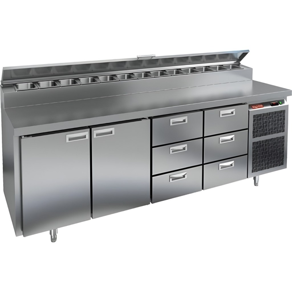 Каталог оборудования Холодильное оборудованиеСтолы охлаждаемыеСтолы холодильные для пиццыСтол холодильный для пиццы HiCold PZ2-1133GN (1/6) Стол холодильный для пиццы HiCold PZ2-1133GN (1/6) Код товара: 064-759 Поделиться: WhatsAppTelegram СравнитьДобавить в КПВ избранное 0 342 442 ₽ В корзину 0 шт Под заказСамовывоз сегодня бесплатно Взять в кредит Купить в лизинг Получить консультацию в WhatsApp Описание Характеристики Отзывы 0 Стол холодильный для пиццы HiCold PZ2-1133GN (1/6) предназначен для кухонь и предприятий общественного питания. Он используется для раскатки теста, подготовки ингредиентов для пиццы, салатов и других блюд, а также для охлаждения и кратковременного хранения скоропортящихся продуктов. Модель совмещает нержавеющую рабочую поверхность и охлаждаемый отсек с 2 дверьми и 6 ящиками, обеспечивая удобный доступ к ингредиентам и эффективное хранение. Особенности: Динамическая система охлаждения для равномерного поддержания температуры Автоматическая оттайка для удобного обслуживания Электронная панель управления для точной настройки параметров Вместительная внутренняя полка формата GN 1/1 (размер 530×325 мм) 2 двери и 6 вместительных ящика для хранения ингредиентов Автоматические доводчики дверей с фиксатором открытого положения Легкозаменяемые магнитные уплотнители для герметичности Открытая агрегатная часть для легкого доступа к компонентам Регулируемые по высоте ножки для устойчивости Нержавеющая столешница глубиной 486 мм и толщиной 50 мм — устойчива к коррозии, легко моется и гигиенична Толщина теплоизоляции: 50 мм Максимальная глубина гастроемкостей: 100 мм Вместимость салат-бара: 13 гастроемкости Стол холодильный HiCold PZ2-1133GN (1/6) — это надежный и функциональный стол для пиццы. Он объединяет рабочую поверхность и охлаждаемый отсек, упрощает хранение и подготовку ингредиентов, обеспечивает удобство работы повара и соответствует стандартам профессиональной кухни. Изображение товара, представленного на фото, может отличаться от его фактического вида. Показать все Габаритные размеры2280×700×1000 ммДиапазон рабочей температурыот +2 до +10 °CРасположение агрегатаБоковое Материал столешницыНержавеющая Тип столаС дверьми и ящиками Тип двериГлухая Объём660 лТип гастроемкостейGN 1/6 Количество дверей2 штКоличество ящиков6 штРазмер полки530×325 ммНапряжение220 ВМощность0,5 кВтТип охлажденияДинамическое Тип оттайкиАвтоматическая Габариты в упаковке2420×850×1080 ммВес нетто208 кгВес брутто240 кгБрендHicoldВсе холодильные столы для пиццы HicoldВсе нержавеющие холодильные столы для пиццы Оставить отзыв Еще никто не оставил отзыв на этот товар Ранее просмотрено Под заказ 209 062 ₽ Стол холодильный для пиццы HiCold PZE1-111GN (1/3) М Под заказ 250 642 ₽ Стол холодильный для пиццы HiCold PZ1-1111GN (1/3) Под заказ 236 872 ₽ Стол холодильный для пиццы HiCold PZ1-111GN (1/3) М НовинкаВ наличии 51 670 ₽ Ларь морозильный с глухой крышкой Haier HCE430RFC