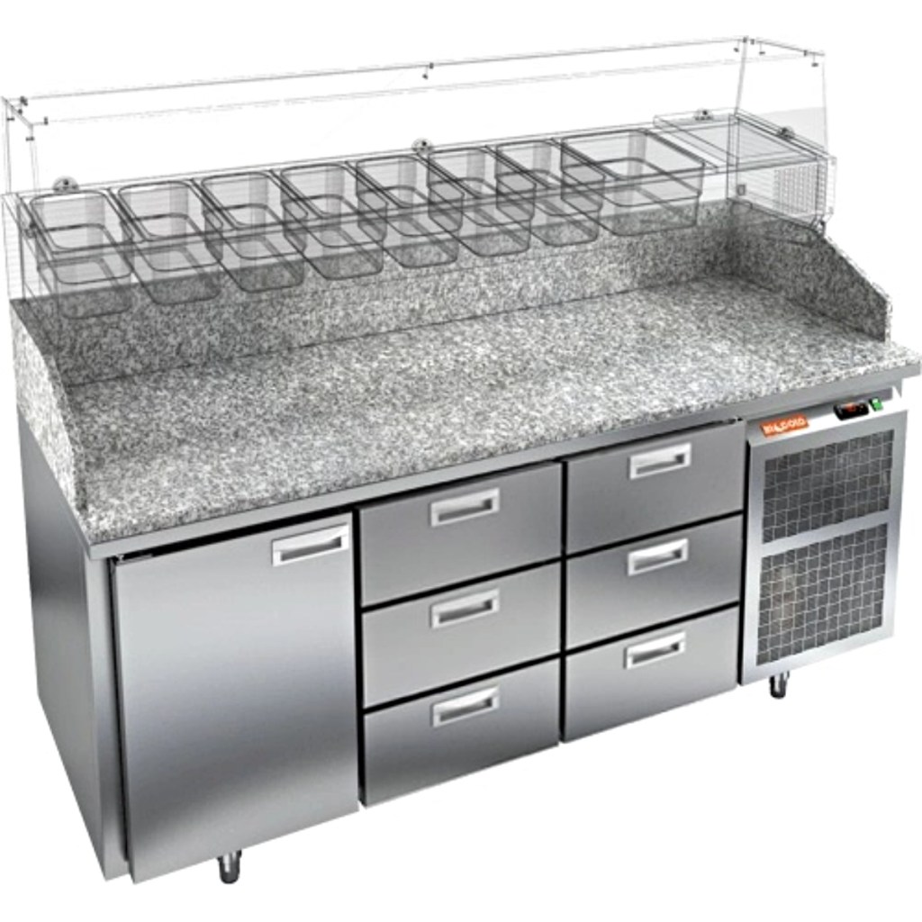 Каталог оборудования Холодильное оборудованиеСтолы охлаждаемыеСтолы холодильные для пиццыСтол холодильный для пиццы HiCold PZ3-133/GN камень Стол холодильный для пиццы HiCold PZ3-133/GN камень Код товара: 065-009 Поделиться: WhatsAppTelegram СравнитьДобавить в КПВ избранное 0 358 552 ₽ В корзину 0 шт Под заказСамовывоз сегодня бесплатно Взять в кредит Купить в лизинг Получить консультацию в WhatsApp Описание Характеристики Отзывы 0 Стол холодильный для пиццы HiCold PZE3-133/GN камень предназначен для использования в пиццериях, кафе, магазинах и ресторанах. Он идеально подходит для раскатки теста, подготовки ингредиентов и кратковременного хранения скоропортящихся продуктов. Витрина приобретается отдельно. Стол сочетает корпус из нержавеющей стали и гранитную столешницу, которая устойчива к механическим и температурным нагрузкам и удобна в работе с тестом. Такая конструкция обеспечивает долговечность, гигиеничность и простоту ухода. Особенности модели: Охлаждение: динамическое — равномерное поддержание температуры Оттайка: автоматическая — удобство и экономия времени Панель управления: электронная — точная настройка температуры Ножки: регулируемые по высоте — устойчивость на неровной поверхности Двери: 1 глухая дверца с автоматическими доводчиками и фиксатором открытого положения Ящики: 6 выдвижных ящика — удобное хранение ингредиентов Уплотнители: легкозаменяемые магнитные — герметичность и простота обслуживания Толщина теплоизоляции: 50 мм — сохранение холода и энергоэффективность Рабочая поверхность: глубина 680 мм — удобство работы HiCold PZE3-133/GN камень— это надёжный и функциональный холодильный стол для пиццы, который сочетает прочность, эргономику и эффективное охлаждение. Благодаря гранитной столешнице, корпусу из нержавеющей стали, двум глухим дверям и двум выдвижным ящикам он станет универсальным решением для профессиональной кухни. Изображение товара, представленного на фото, может отличаться от его фактического вида. Показать все Габаритные размеры1835×700×1050 ммДиапазон рабочей температурыот +2 до +10 °CРасположение агрегатаБоковое Материал столешницыГранитная Тип столаС дверьми и ящиками Тип двериГлухая Объём505 лКоличество дверей2 штКоличество ящиков2 штРазмер полки530×325 ммНапряжение220 ВМощность0,5 кВтТип охлажденияДинамическое Тип оттайкиАвтоматическая Габариты в упаковке2000×850×1180 ммВес нетто172 кгВес брутто192 кгБрендHicoldВсе холодильные столы для пиццы HicoldВсе нержавеющие холодильные столы для пиццы Оставить отзыв Еще никто не оставил отзыв на этот товар Ранее просмотрено Под заказ 227 332 ₽ Стол холодильный для пиццы HiCold PZ3-11/GN 3 камень Под заказ 225 711 ₽ Стол холодильный для пиццы HiCold PZ1-111GN (1/3) стекло Под заказ 406 521 ₽ Стол холодильный для пиццы HiCold PZ3-2222/GN камень