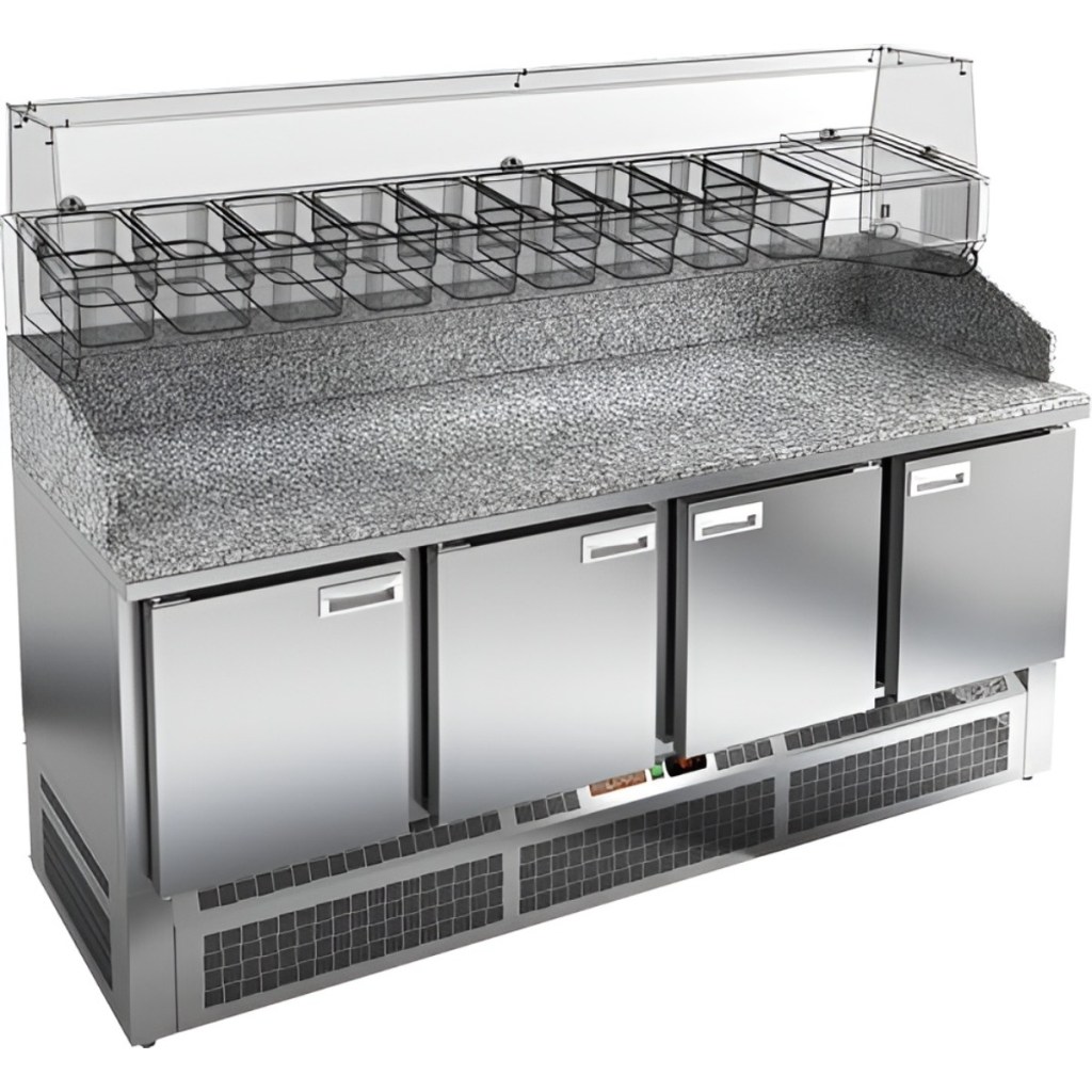 Каталог оборудования Холодильное оборудованиеСтолы охлаждаемыеСтолы холодильные для пиццыСтол холодильный для пиццы HiCold PZE3-1111/SN (R290) камень Стол холодильный для пиццы HiCold PZE3-1111/SN (R290) камень Код товара: 062-041 Поделиться: WhatsAppTelegram СравнитьДобавить в КПВ избранное 0 264 141 ₽ В корзину 0 шт Под заказСамовывоз сегодня бесплатно Взять в кредит Купить в лизинг Получить консультацию в WhatsApp Описание Характеристики Отзывы 0 Инструкции 2 Стол холодильный для пиццы HiCold PZE3-1111/SN (R290) камень предназначен для использования на предприятиях общественного питания и торговли. Он идеально подходит для раскатки теста, подготовки ингредиентов и кратковременного хранения скоропортящихся продуктов и напитков. Благодаря совмещению охлаждаемого объёма и просторной рабочей поверхности, стол значительно упрощает и ускоряет процесс приготовления блюд. Корпус изготовлен из нержавеющей стали, а прочная гранитная столешница устойчива к механическим и температурным нагрузкам. Совместимость с холодильными витринами: VRTG 1970, VRTU 1970, VRTO 1970. Особенности модели: Электронная панель управления — позволяет точно контролировать температурный режим. 4 вместительные внутренние полки формата GN 1/1 — обеспечивают удобное хранение ингредиентов. Автоматические доводчики дверей с фиксатором открытого положения — повышают комфорт в работе. Легкозаменяемые магнитные уплотнители — обеспечивают герметичность и лёгкость обслуживания. Открытая агрегатная часть — облегчает доступ к элементам обслуживания. Регулируемые по высоте ножки — позволяют установить стол на неровной поверхности. Глубина рабочей поверхности: 580 мм — обеспечивает достаточное пространство для приготовления. Толщина столешницы: 50 мм — гарантирует прочность и надёжность конструкции. Толщина теплоизоляции: 50 мм — способствует сохранению холода и энергоэффективности. Hicold PZE3-1111/SN (R290) камень — профессиональный стол для пиццы, сочетающий в себе эргономику, долговечность и удобство, что делает его отличным выбором для интенсивной работы на кухне.Изображение товара, представленного на фото, может отличаться от его фактического вида. Показать все Габаритные размеры1970×600×1050 ммДиапазон рабочей температурыот +2 до +10 °CРасположение агрегатаНижнее Материал столешницыГранитная Тип столаС дверьми Тип двериГлухая Объём430 лКоличество дверей4 штРазмер полки430×325 ммНапряжение220 ВТип охлажденияДинамическое Тип оттайкиАвтоматическая Габариты в упаковке2000×850×1180 ммВес нетто191 кгВес брутто211 кгБрендHicoldВсе холодильные столы для пиццы Hicold Оставить отзыв Еще никто не оставил отзыв на этот товар Паспорт на HICOLD PZE3-1111/SN (R290).pdfДекларация о соответствии.pdf Ранее просмотрено Под заказ Цена по запросу Камера холодильная Polair КХН-23,18 (2260×4960×2460) 80 мм Под заказ 290 691 ₽ Камера холодильная Polair КХН-17,28 (1660×4660×2720) 80 мм