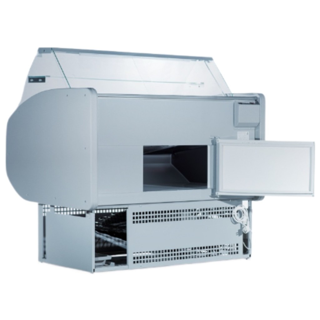 Внутреннее LED-освещение обеспечивает яркую подсветку продукции при низком энергопотреблении и минимальном тепловыделении. Лампу можно включать кнопкой на панели управления, а включение/выключение витрины контролируется надёжным автоматом IEK. Регулируемые опоры гарантируют ровное расположение витрины, правильный сбор конденсата и бесшумную работу.