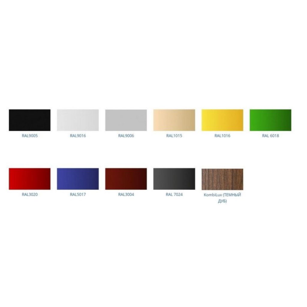 Модель оснащена регулируемыми ножками высотой 20–35 мм. Поверхность выкладки и столешница выполнены из окрашенной стали, боковины — из пластика, а опорная стойка, кронштейны и обшивка светильника — из нержавеющей стали.