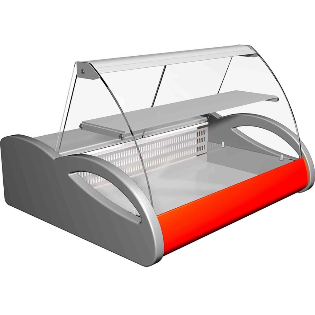 Витрина оснащена гнутым передним стеклом, обеспечивающим хороший обзор продукции, неохлаждаемой полкой для дополнительной выкладки, а также ночными шторками из органического стекла для защиты содержимого в нерабочее время. Корпус выполнен из стали с ППУ-изоляцией, что обеспечивает надёжную теплоизоляцию. Передняя обшивка, столешница и полка изготовлены из нержавеющей стали, а боковины — из пластика.